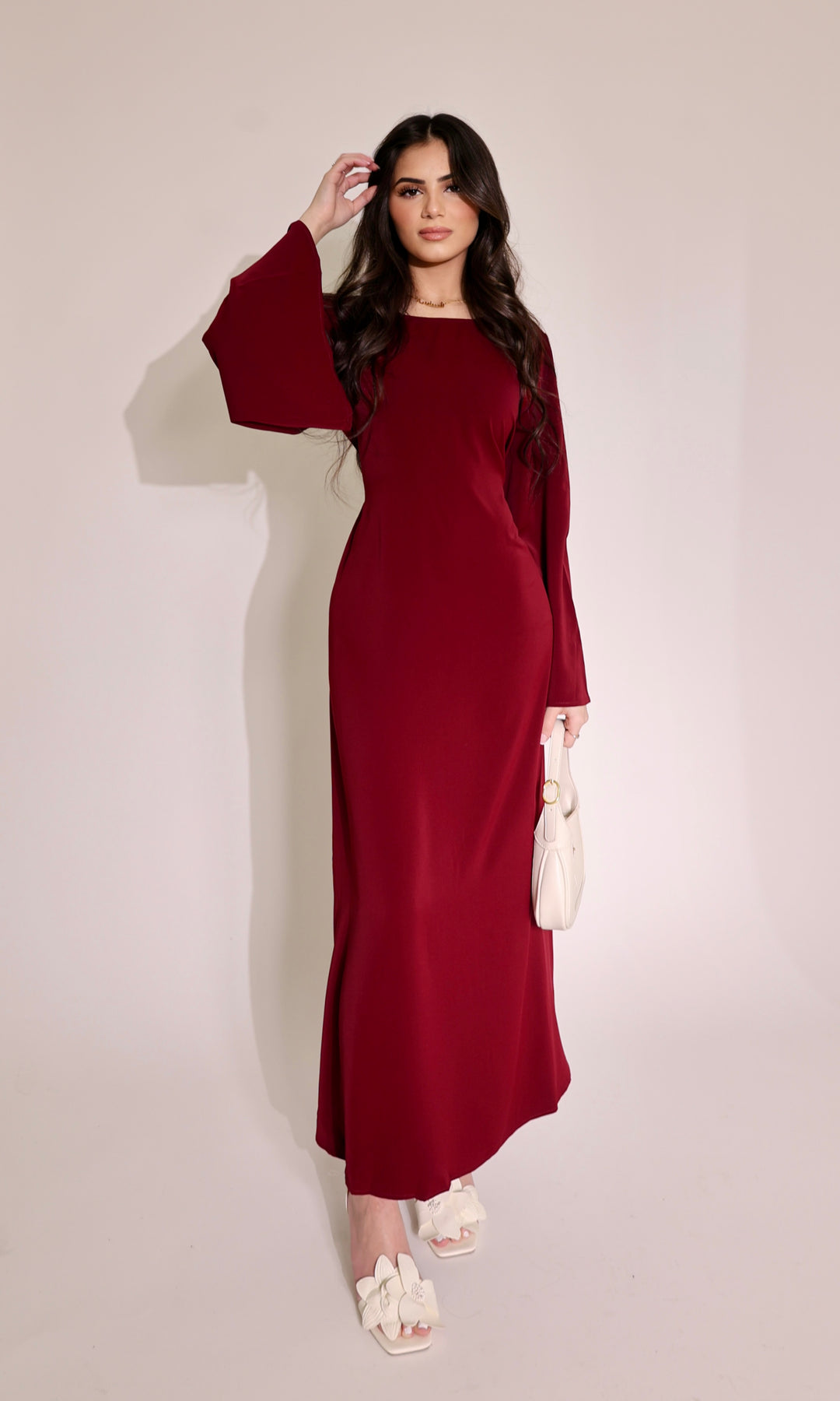 Turn heads with this effortlessly elegant burgundy maxi dress, crafted from premium Nida fabric for a soft, luxurious feel and graceful drape. Designed with a flattering silhouette, this dress features wide bell sleeves that add a touch of drama and sophistication, perfect for both formal occasions and elevated everyday wear. The lightweight, breathable Nida fabric ensures all-day comfort, while the rich burgundy hue exudes timeless charm. Pair it with heels and a clutch for a chic, polished look.
