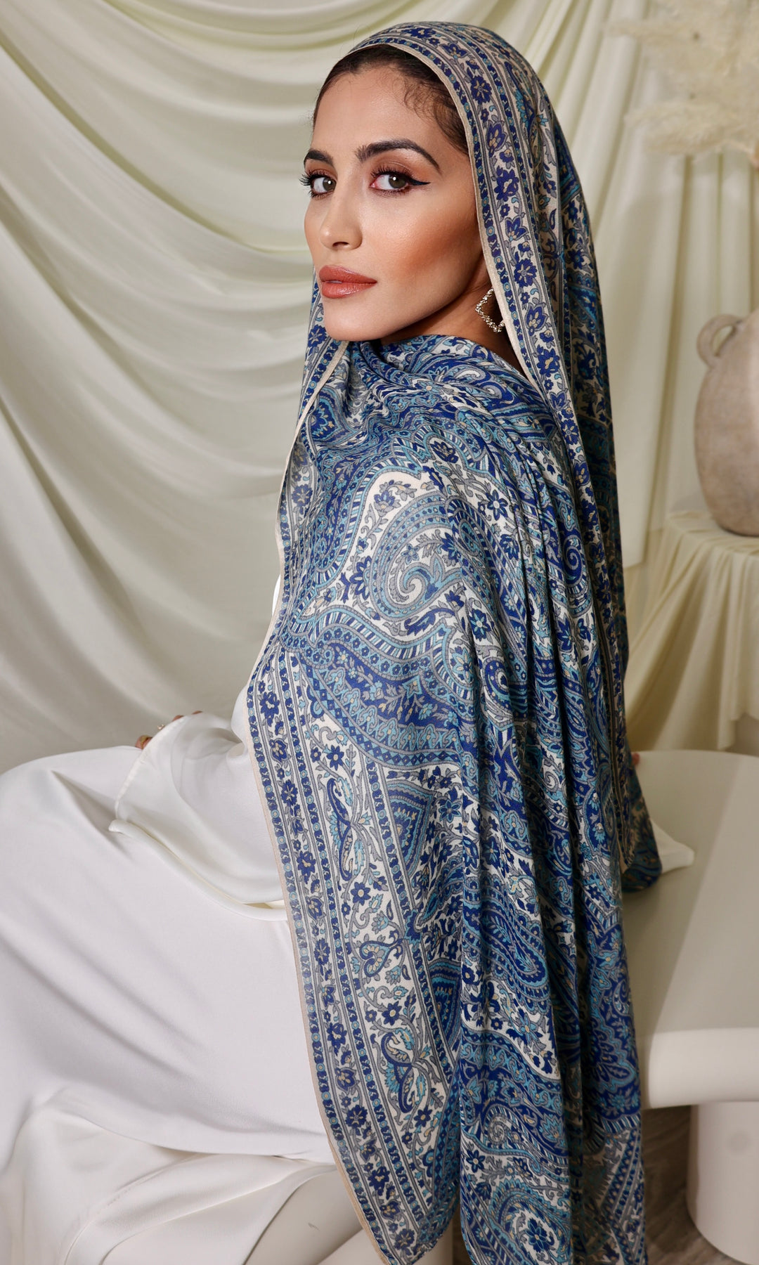 Intricate, timeless, and effortlessly graceful — Royal Tabriz draws inspiration from traditional Persian textile artistry with rich blue tones and ornate paisley motifs. Crafted from lightweight modal, this hijab flows with elegance while telling a story of heritage and refinement. A true classic for the modern muse.