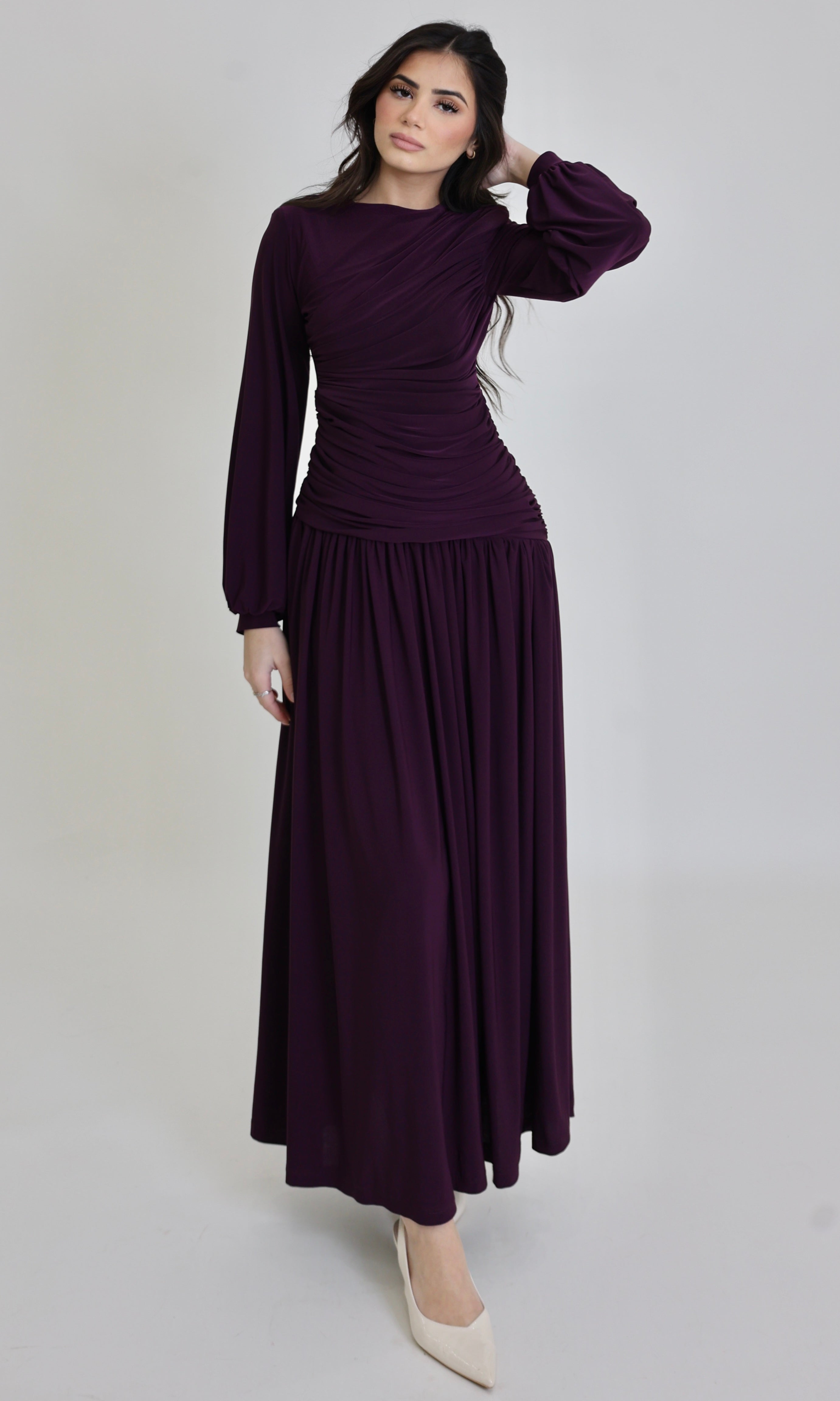 Introducing the Shorook Maxi, the definition of effortless elegance. This full-length gown is crafted from a buttery-soft, double-stretch fabric that smooths, sculpts, and drapes beautifully on every shape.